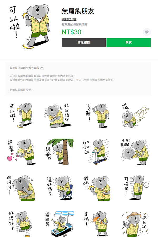 LINE貼圖的無尾熊朋友