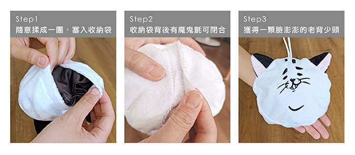 隨手一揉也可輕易塞進收納袋之中,完成一顆臉澎澎的老背頭方便攜帶唷!